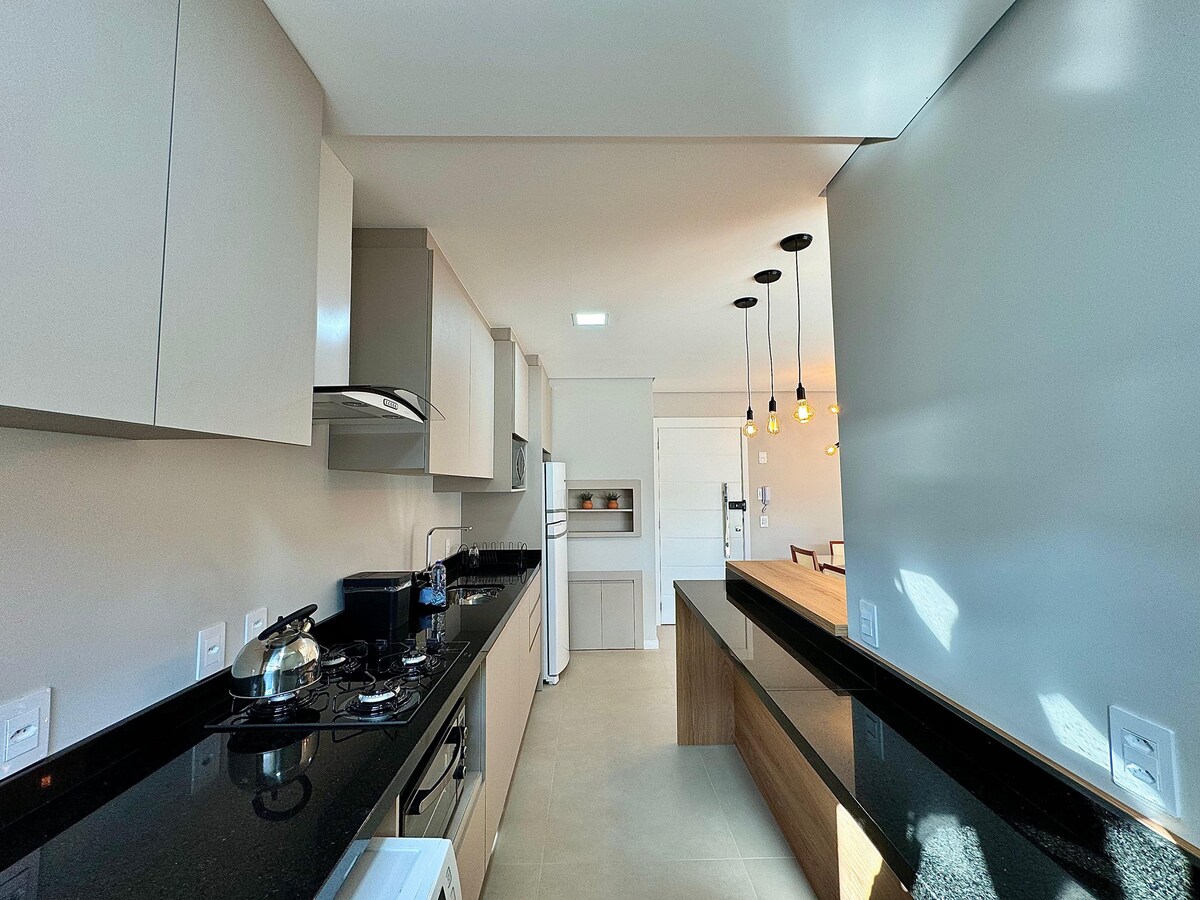Apartamento nuevo, en el centro, con 2 suites + colchón auxiliar y lavado, 94m privados, frente con balcón, vista a la sierra y al centro, a 180m de la calle cubierta y a 50m del complejo Vita (nueva calle cubierta). Restaurantes, tiendas, farmacias, todo lo que ofrece el centro de Gramado a 50 metros del apartamento. Calefacción en todo el apartamento, split en la sala y en las 2 suites (solo frío), parrilla, cocina equipada, lavadora, finamente amueblado. Garaje cubierto para 1 coche. Proporcionamos ropa de cama, mantas y toallas, listas para usar.