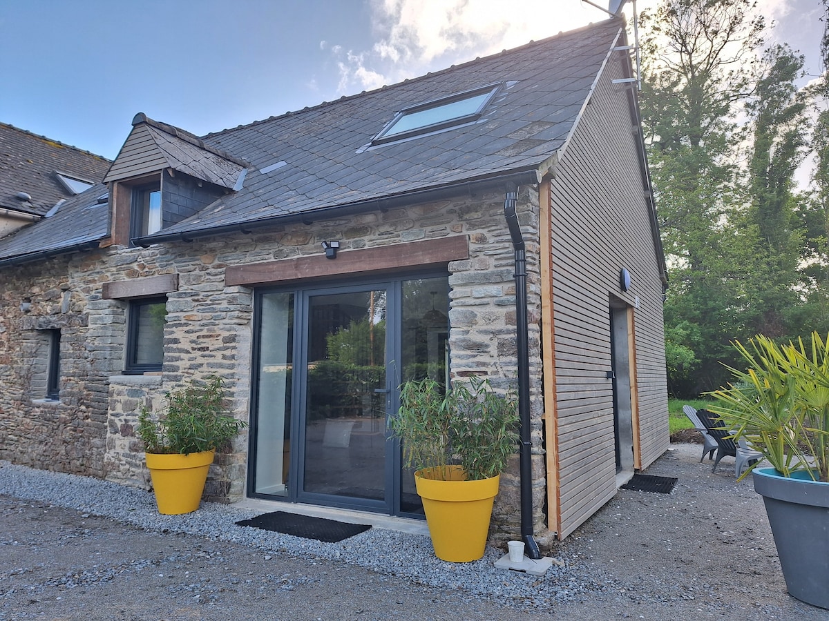 Alojamiento independiente de nuestra casa principal (en la planta baja) que consta de una sala de estar luminosa de 16 m2, un dormitorio de 10 m2, un baño y un aseo separado. La habitación principal da a una terraza independiente y al abrigo de las miradas. Situado a 2 pasos de la plaza central de Malestroit tendrá todas las comodidades sin utilizar su vehículo. Toallas disponibles si es necesario.