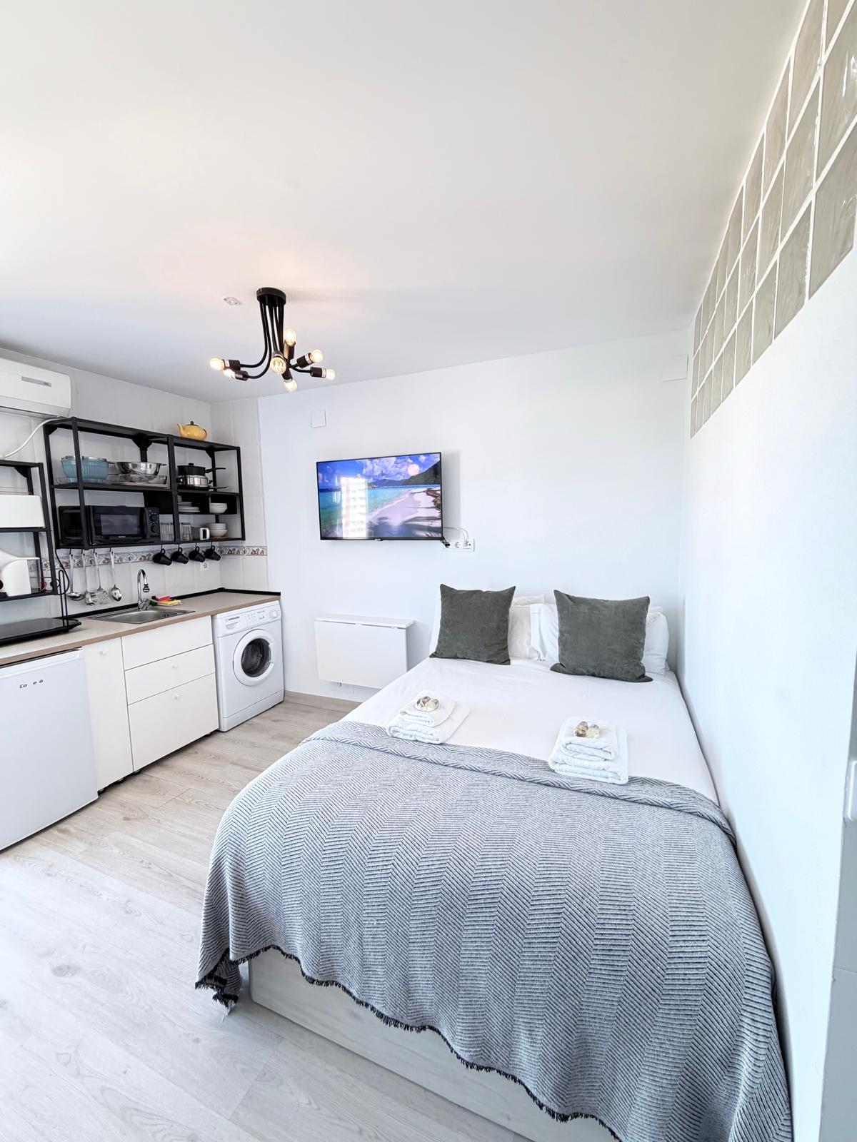 Descuentos: Semana - 5% Mes - 10% Lujoso estudio recién reformado y equipado con piscinas, zonas verdes y parques, muy bien ubicado con aparcamiento gratuito para una estancia muy agradable y en familia. Entrada totalmente AUTOMATA gracias a la cerradura inteligente de NUKI, sin esperas ! A 10 minutos de la playa Sitios de interés próximos como restaurantes, supermercados, farmacias y hasta pista de patinaje en temporada invernal. El piso cuenta con Wifi 5G, Netflix, HBO, Prime Video y Disney