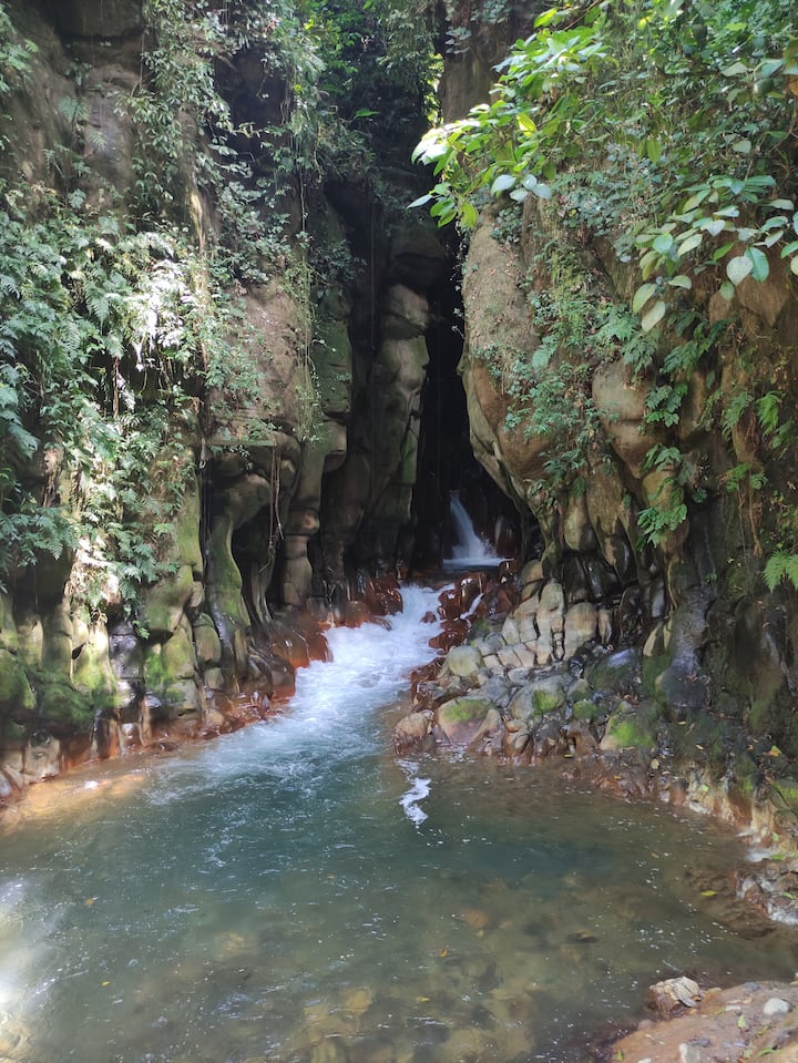 Cascada de La Leona, aguas termales y baños de barro