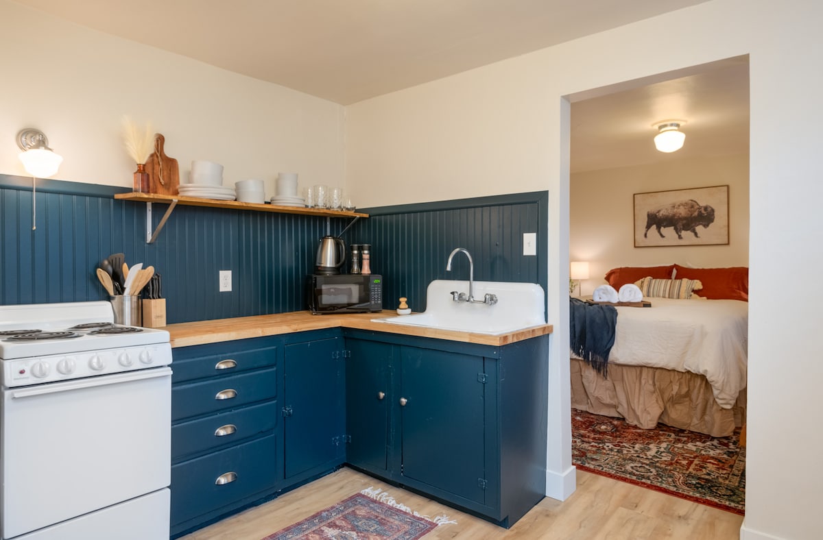 Alójate en el corazón del centro de Missoula, Montana, en un lujoso estudio remodelado ubicado en el séptimo piso del icónico e histórico edificio Wilma de 100 años. Olvídate de las insípidas habitaciones de hotel y ven de vacaciones a un espacio encantador que rezuma carácter. Vistas al río Clarkfork, al nuevo Caras Park, al valle de Missoula y a las montañas circundantes. El estudio incluye una cama tamaño king personalizada. Quédate a comer en la cocina totalmente equipada con encimeras de granito y electrodomésticos de acero inoxidable.