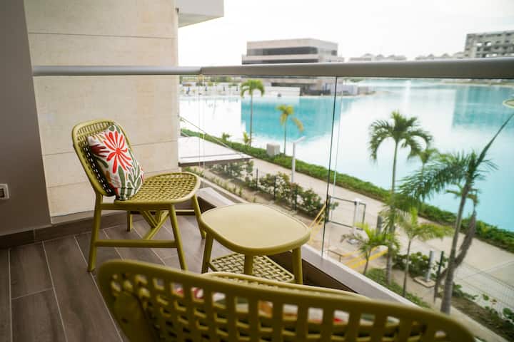 Retiro de 5 estrellas con vistas a Crystal Lagoon/cama tamaño king