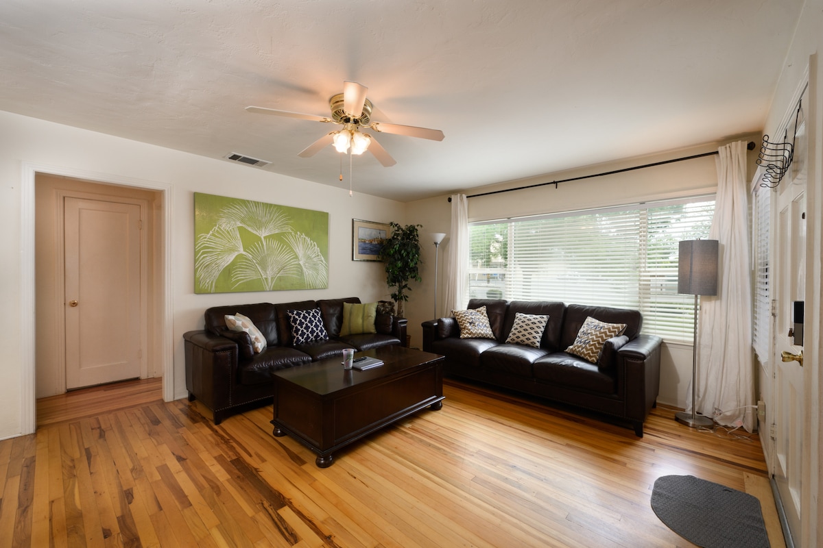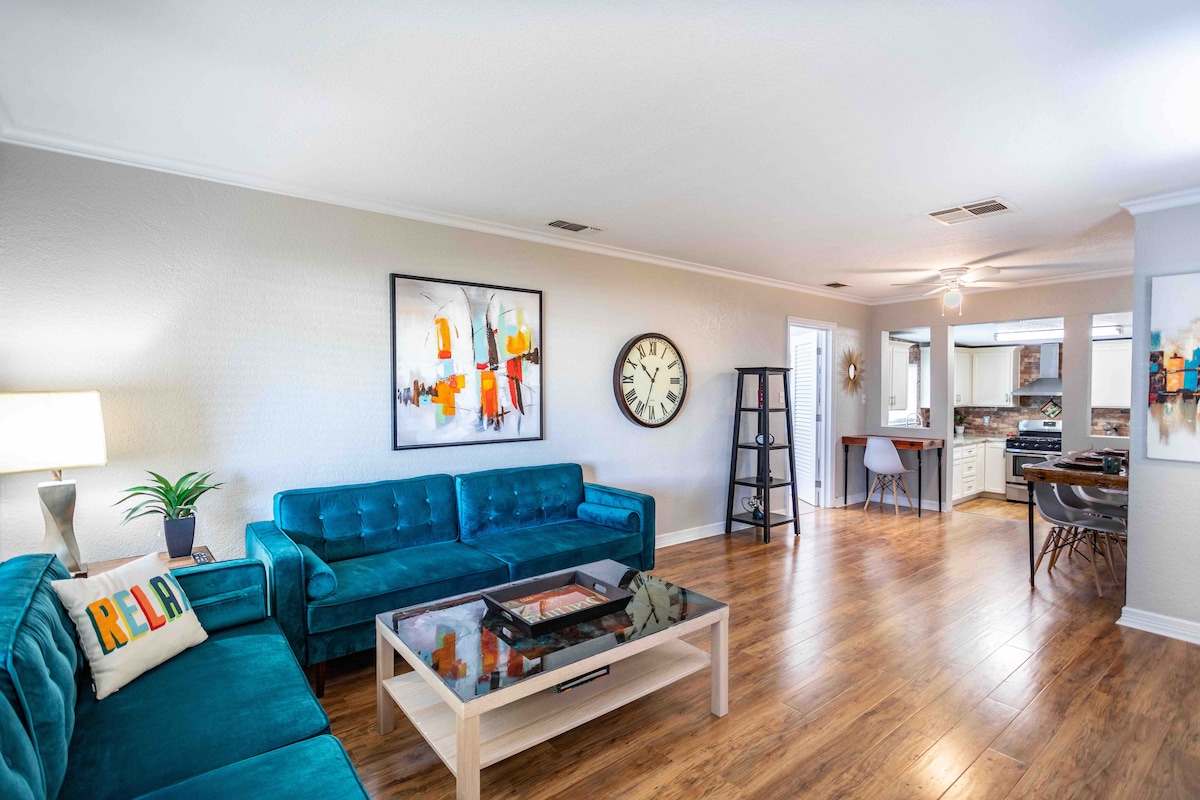 ¡Adorable casa de una sola planta ubicada en el centro y totalmente equipada para que te sientas como en casa lejos de casa! Te esperan sábanas de primera calidad, toallas de piscina, cafetería, televisores para streaming y wifi bastante rápido. Patio trasero privado con luces de bistró, piscina, barbacoa y mesa al aire libre con fogata. ¡Disfruta del libro de bienvenida personalizado con nuestras recomendaciones sobre restaurantes y cosas que hacer para vivir como un lugareño mientras estás aquí para disfrutar al máximo de tu estancia! Muy cerca de la autopista, restaurantes y más. La piscina no está climatizada.