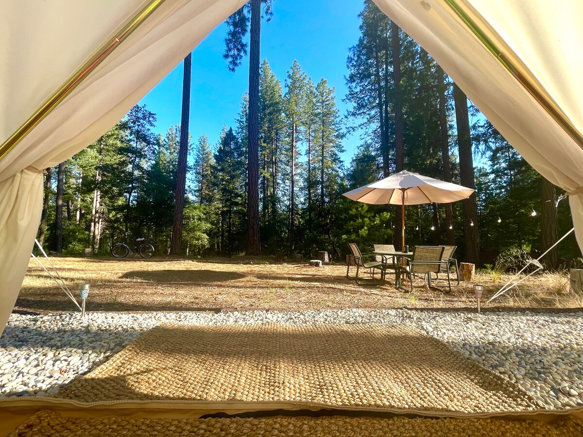 Escapa del ajetreo y relájate en tu propio santuario privado en una tienda de campaña en Sol Spirit Retreats, enclavada en el corazón del Triángulo Esmeralda de California. Nuestras lujosas tiendas de lona ofrecen la combinación perfecta de confort y naturaleza. Desconecta y relájate, contempla la vía láctea y escucha el murmullo del río. Recorre nuestros jardines regenerativos y disfruta de los frutos de nuestro trabajo. Camina hasta nuestro pozo de agua local o haz una excursión de rafting de un día completo para refrescarte en un caluroso día de verano.