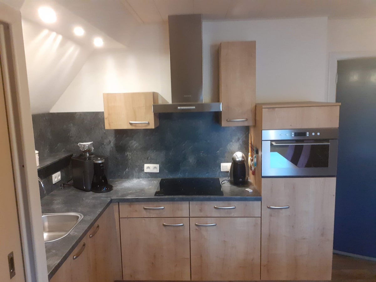 Apartamento en casa característica de 1890. El apartamento está situado en los pisos 1 y 2. Te alojas con una familia joven. En la 1ª planta está el baño y el inodoro separado. En el tercer piso cocina y salón/dormitorio. La cocina está equipada con refrigerador, hervidor de agua, cafetera, microondas combinado y vitrocerámica. Hay una mesa con 2 sillas. En el salón/dormitorio hay una cama de matrimonio, sofá (para dormir), TV (yeso cromado para, entre otras cosas, en Netflix: inicia sesión tú mismo).