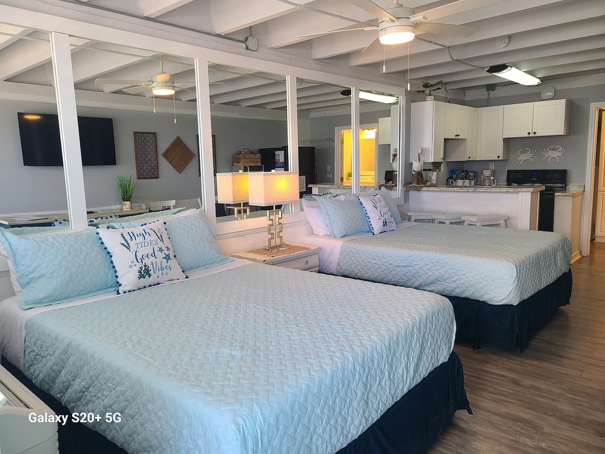 ¡Un enfoque minimalista para la comodidad y la calidad! Pequeño estudio con paredes compartidas, ya que hay otros alquileres. No hay espacios compartidos. Cuenta con una cocina PRIVADA completa, lavandería PRIVADA completa y un bonito baño privado con bañera. ¡A solo 650 yardas de las arenas blancas y azucaradas de las playas más hermosas del mundo! Perfecto y cómodo para una pareja y puede acomodar a un niño o una tercera persona en una silla que se convierte en una cama (no es supercómoda, pero servirá). TV inteligente.