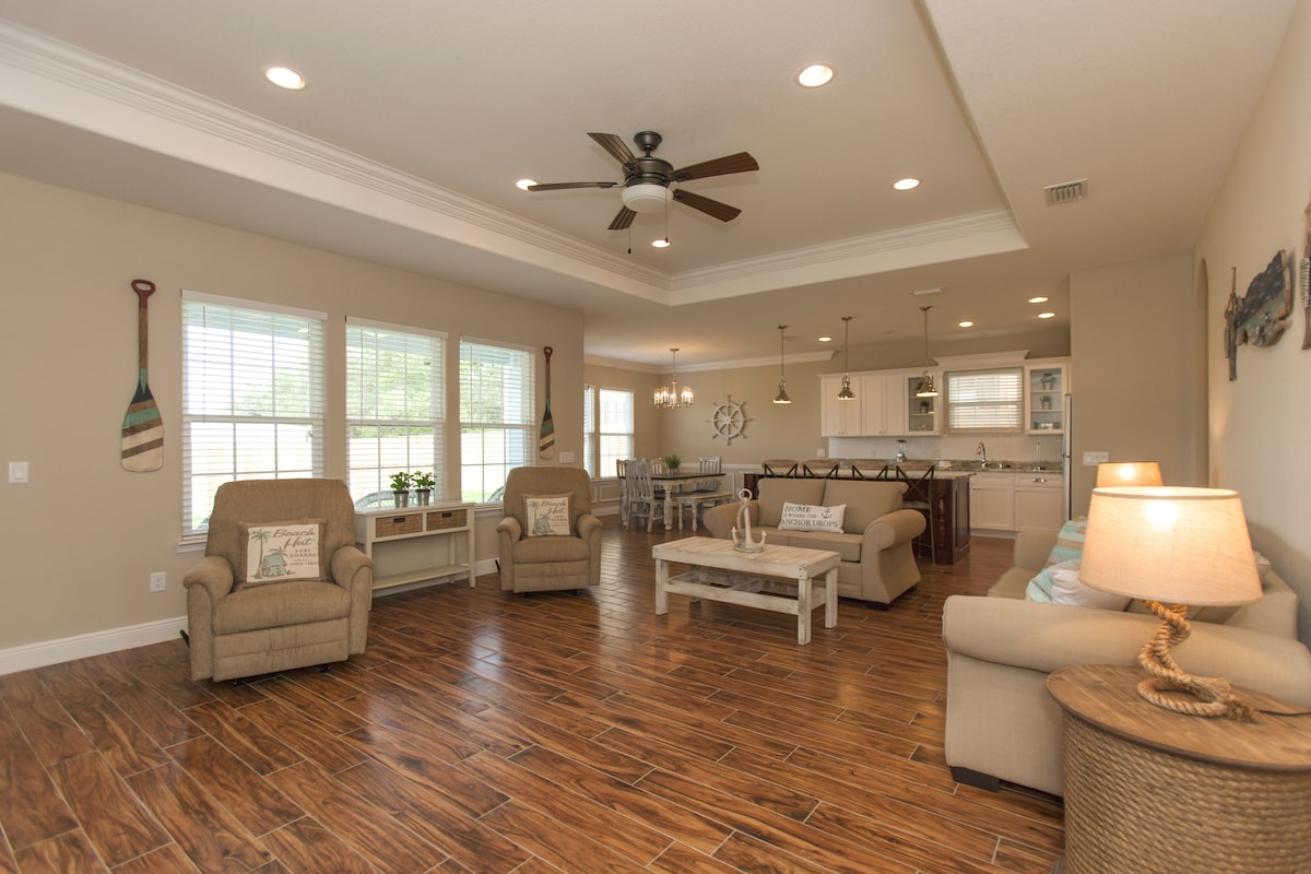 ¡A solo 2 millas de «Las playas más hermosas del mundo» y de algunos de los mejores restaurantes de todo Panama City Beach! Cuando no estés tomando el sol o surfeando, disfruta de tu estancia en esta casa bellamente decorada, equipada con todas las comodidades, que incluyen: un pozo para fogatas, parrilla para barbacoa, wifi, televisores inteligentes Roku e incluso un parque infantil para tu pequeño. PCB tiene algo para todos los gustos: restaurantes, tiendas, paseos, juegos, playas, sol, arena y mucho más. ¡Volverás!