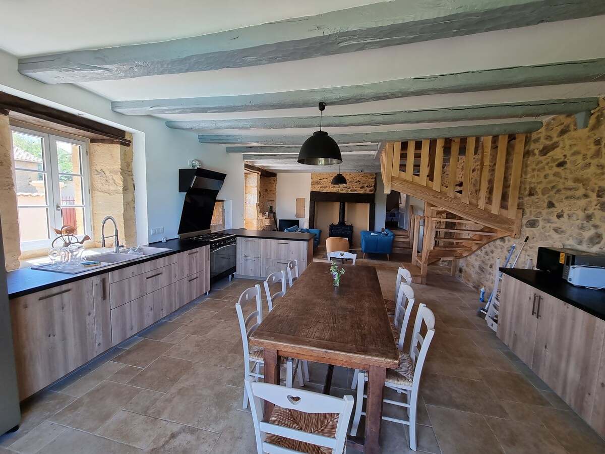 Olvídese de sus preocupaciones en este alojamiento espacioso y sereno. - Venga a relajarse en la tranquilidad de esta antigua granja transformada en una casa de campo con buen gusto en 2021 en un entorno verde. Déjese encantar por la Dordoña: sus pintorescos pueblos, castillos y productos locales. Podrá dar un paseo en gabarra por la Dordoña, un descenso en canoa, o simplemente pasear a su antojo por los numerosos senderos forestales. No hay conexión a internet No se admiten animales