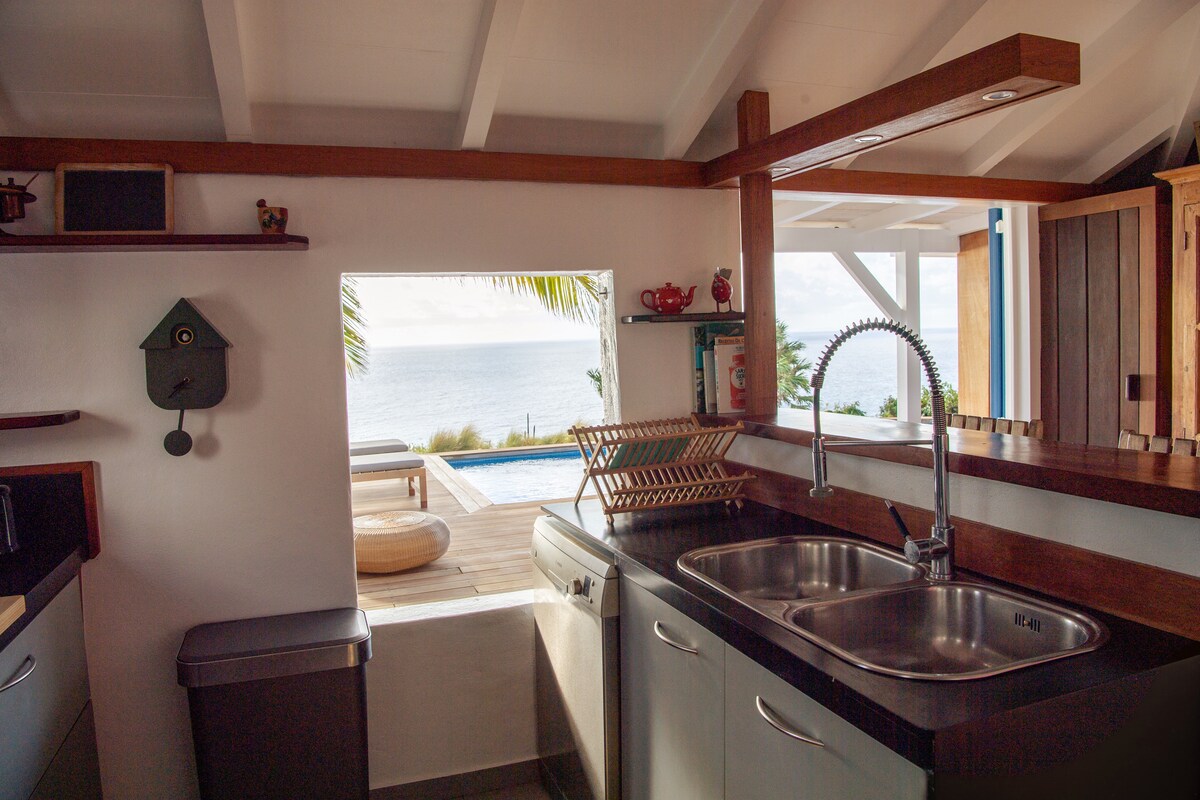 Situada en las alturas de Vitet con una vista extraordinaria con vistas a los Grandes Fondos. Esta casa con encanto criolla es una invitación a la relajación y promesa de serenidad, enclavada entre el mar y la montaña. Situada en Vitet Hill, esta encantadora casa criolla es una promesa de relajación y serenidad. Espacios al aire libre e impresionantes vistas panorámicas al mar y a las montañas con vistas a los Grands Fonds. -10 min en coche > Grand cul de Sac Lagoon (snorkel) -10 min en coche > Playa Lorient (tienda de comida, panaderías)