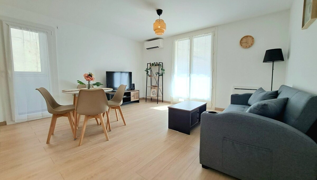 Bienvenido a nuestro encantador apartamento de Marsella de 75 m², idealmente situado en el 1.º piso sin ascensor en el centro de la ciudad, a solo 100 metros de la estación de tren de Saint-Charles. Ubicado en el barrio del Chapitre. El apartamento tiene 3 habitaciones, incluyendo 2 dormitorios en el lado del patio para noches tranquilas. Las habitaciones pueden alojar hasta 4 personas. Con una gran sala de estar luminosa. También encontrará un amplio cuarto de baño. Con el tranvía y el metro situados a solo 5 minutos andando