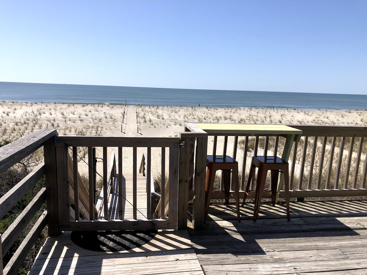 ¡Frente al mar! ~ Relájate y disfruta del ambiente relajado de esta cabaña de playa de los años 50 en la terraza o en la casa. Hermosos amaneceres y atardeceres sobre el Océano Atlántico. La terraza tiene sillas para relajarse con el sonido de las gaviotas. Duerme con el sonido del océano. Cocina completa. Precios desde 130 a 480 dólares por noche. De domingo a domingo. Fuera de temporada disponible todas las noches. La casa de campo es ideal para familias pequeñas, 1-2 parejas y solteros. Máx. 6. Confirma la disponibilidad antes de reservar.