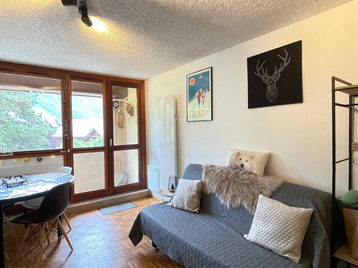 Studio cabine 20m², en angle, aucun vis à vis et superbe vue sur la vallée. Balcon 4.5m² Résidence le Grand Stemm. Idéal couple ou couple + 1 enfant Logement entièrement refait à neuf. Entrée avec Coin cabine, 2 lits superposés. Salon avec placard, buffet, tv, canapé lit avec vrai matelas en 160! Table hautes et 4 tabourets Dans le logement, tout pour manger et faire la cuisine, tout est neuf, moderne, appareil à raclette présent! Senseo. Draps et alaise à prévoir obligatoirement! Merci