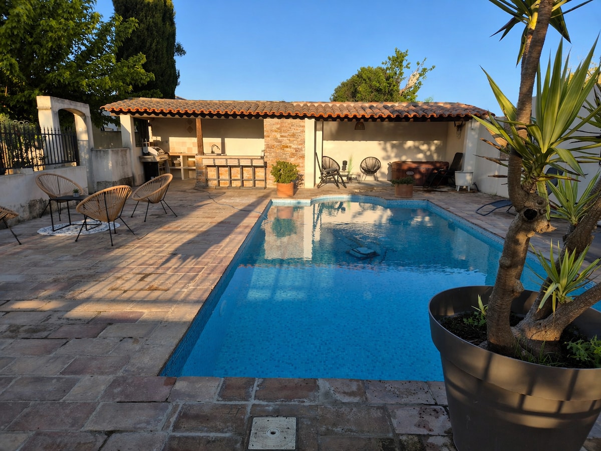 Bienvenidos a Ô Jacuzzi du Mazet, un remanso de paz enclavado en la garriga, sin vecinos enfrente y a pocos minutos de Montpellier. Ideal para una escapada romántica, un descanso relajante con amigos o una estancia familiar, este lugar único le invita a disfrutar de un ambiente cálido y revitalizante. Imagínese: - Relajarte en un jacuzzi privado bajo las estrellas. - Desayunar bajo el albaricoquero. - Disfrutar de una noche de barbacoa y plancha, con total tranquilidad, sin nadie enfrente.