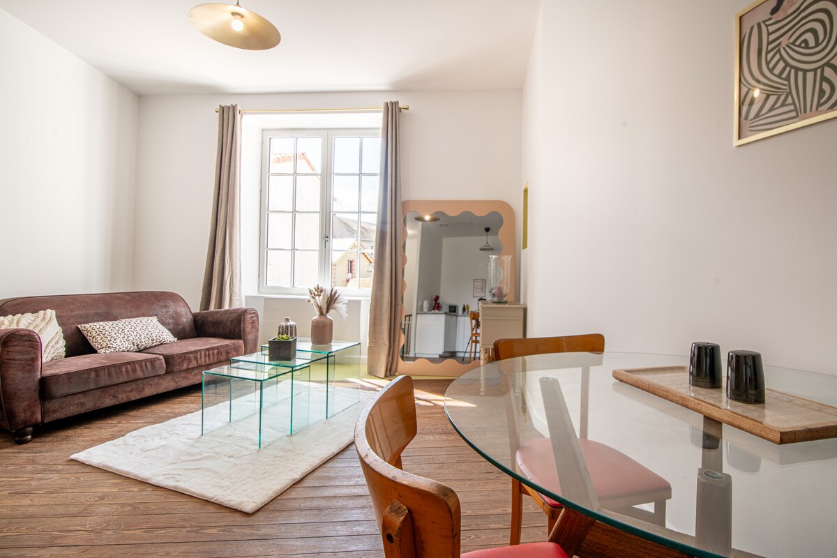 Bienvenido a nuestro encantador loft de 70 m², idealmente ubicado en el centro de Cholet. Perfecto para una escapada romántica, nuestro alojamiento cuenta con un ambiente cálido e instalaciones de primera gama. A solo 25 minutos del famoso parque Puy du Fou, es la base ideal para descubrir la región mientras disfrutas de un entorno relajante e íntimo.