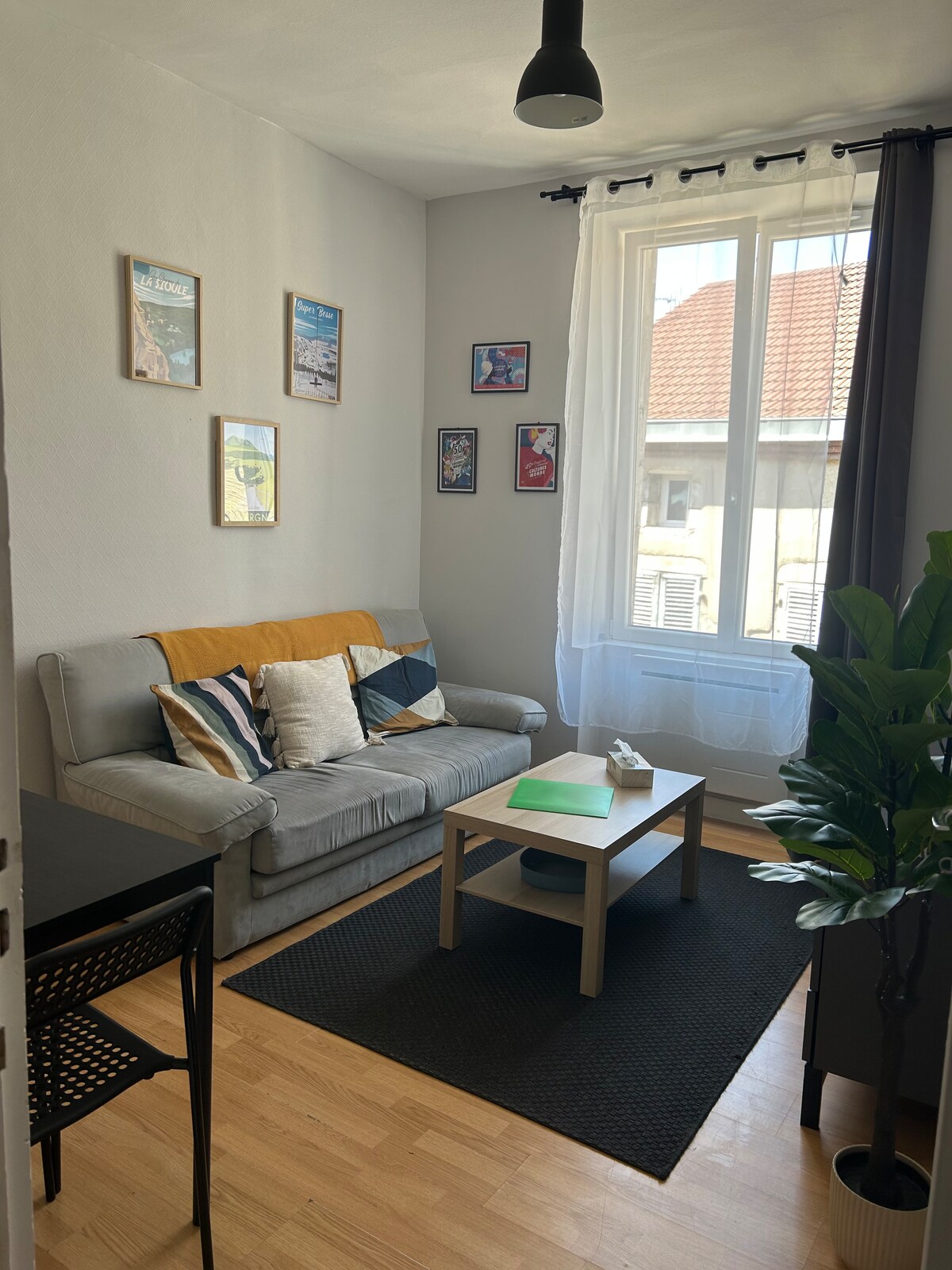 GANNAT, en un pequeño edificio al lado de la estación de tren y cerca de todos los comercios, en el 1.er piso, apto. tipo F1 bis atípico de 40 m2, recién terminado de renovar, que consta de 2 habitaciones: dormitorio (cama doble y vestidor) semiabierto a la sala de estar equipada con sofá cama, mesa, televisor HD de 127 cm, cocina equipada (nevera, campana extractora, horno, microondas, placa de cocción), cuarto de baño con ducha y WC - Internet de muy alta velocidad en wifi (fibra) - Entrada segura - Aparcamiento gratuito en la calle.