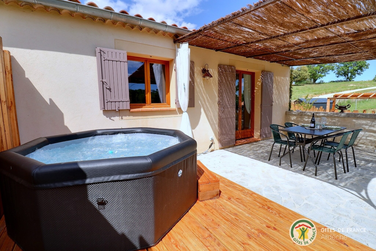Esta casa de campo para 4 personas se encuentra en una aldea cerca del pueblo de Saint Remèze y los sitios turísticos del sur de Ardèche (Pont d'Arc, Grotte Chauvet 2). Te ofrezco relajarte en la calma de la naturaleza. Servicios: sábanas, toallas, wifi, cuna plegable, silla alta, aparcamiento gratuito, jardín cerrado para niños y animales, ping-pong, juegos y hamaca. ¡Disfrutarás de un jacuzzi al aire libre todo el año! Y una estufa de leña para el invierno. DEPÓSITO REQUERIDO: 300 € + 80 € (mascotas)