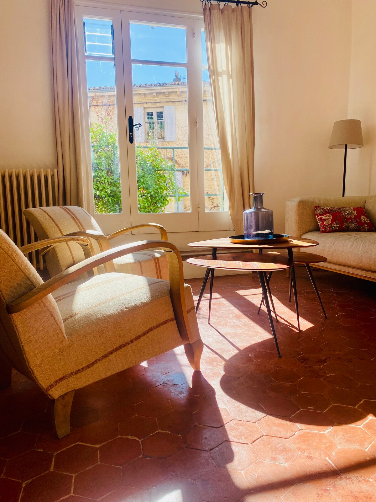 Muy bonita casa de arquitecto de una sola planta, totalmente reformada y con aire acondicionado en toda la vivienda, en una parcela tranquila de 3000 m², piscina de 9 × 3 m climatizada en primavera y otoño, 2 dormitorios amplios, cocina totalmente equipada, aseo independiente, cuarto de baño con ducha italiana en travertino, al igual que todos los suelos y las terrazas, zona de estar exterior cubierta, plancha de gas y aparcamiento. Ropa de cama, toallas y toallas de piscina incluidas Entre Gordes y St. Saturnin les Apt idealmente situado para visitar el Luberon
