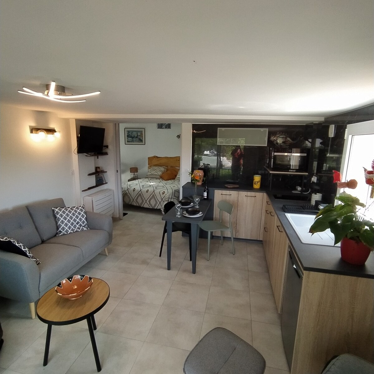 Charmant studio en rez-de-chaussée de notre maison avec entrée indépendante Bienvenue dans ce studio confortable et bien agencé, situé au rez-de-chaussée de ma maison, avec une entrée totalement indépendante. Idéal pour une personne seule, un couple, ou un couple avec jeunes enfants ou un bébé.