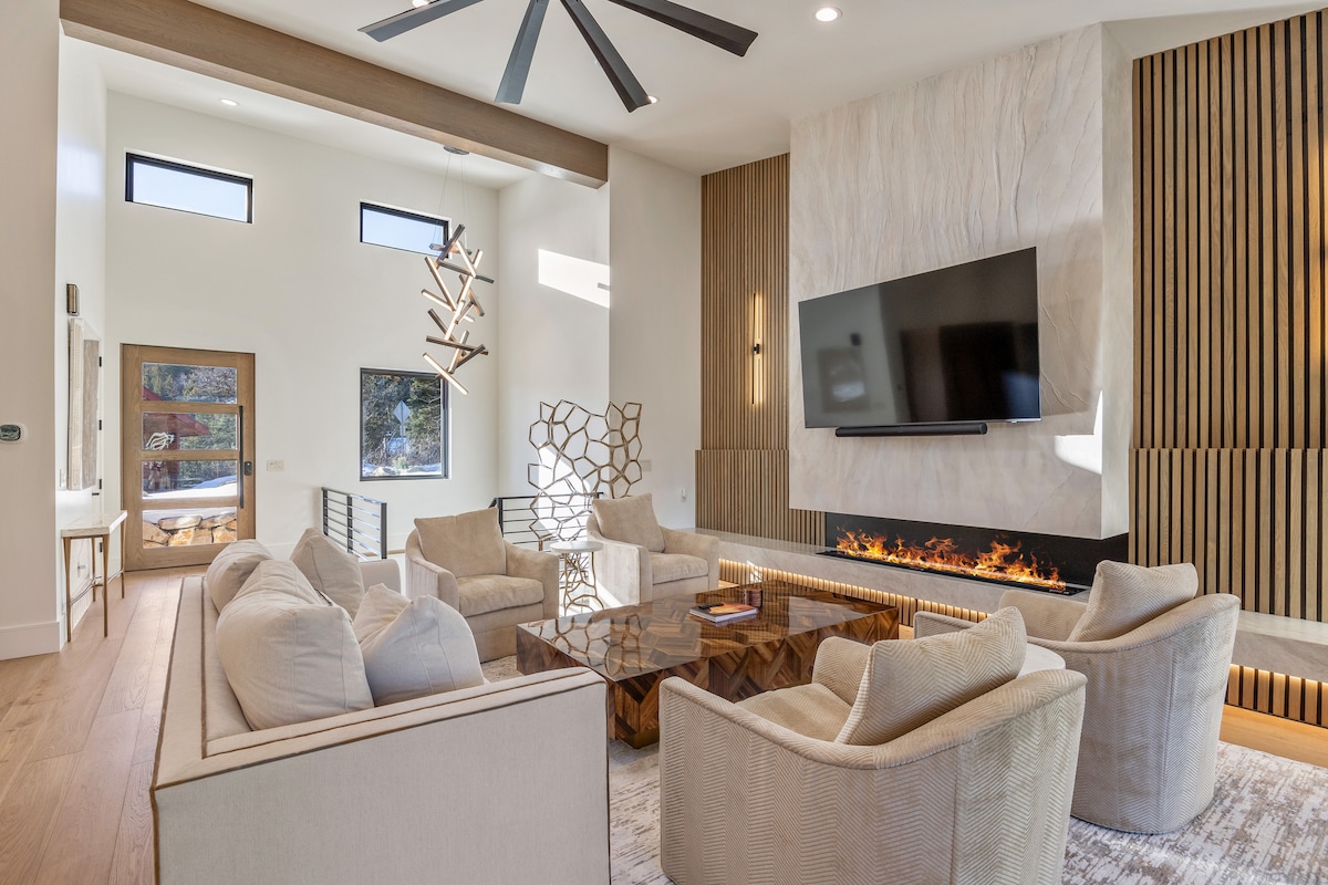¡Bienvenido a tu sereno refugio en la base de Steep Mountain! Una casa moderna que ofrece acceso inteligente, internet de fibra y estudio de trabajo. La cocina abastecida cuenta con encimeras de granito y electrodomésticos de calidad. Relájate en la sala de estar con un televisor OLED y una chimenea de leña, o disfruta de la gran terraza y la barbacoa. Todas las habitaciones ofrecen ropa de cama limpia y lujosa y vistas impresionantes. Hay estaciones de esquí de primera categoría a poca distancia en coche y el parque Point of the Mountain Flight Park está a poca distancia a pie. ¡Te espera un espacio limpio y contemporáneo!