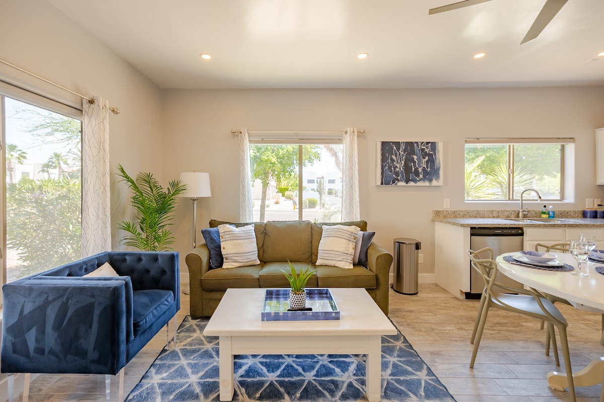 The Hill's Bungalow, una casita maravillosamente encantadora con entrada privada independiente y aparcamiento. Sal por la mañana, contempla el amanecer y siéntate en el porche trasero privado para ver el atardecer. Acabados personalizados y grandes ventanales que dan a una cocina gourmet/gran sala común, medio baño, TV de 50 pulgadas y wifi de alta velocidad. Una cama tamaño king con un lujoso baño completo hace que relajarse sea fácil. A poca distancia de rutas de senderismo, a 2 minutos en coche del centro de FH, a 10 minutos de Scottsdale o a 35 minutos de Sky Harbor.