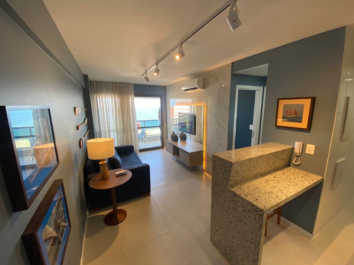 Moderno y acogedor estudio frente al mar en Jardim Armação, con una vista privilegiada y una ubicación estratégica frente al mar. Ideal para el ocio o el trabajo, se encuentra a 5 minutos del Centro de Convenciones y del O Canto da Cidade Arena, el escenario de los principales eventos. El espacio ofrece aparcamiento cubierto, aire acondicionado, wifi rápido, cocina equipada, café espresso y un condominio completo con conserje las 24 horas. Capacidad para 4 adultos. A solo 5 minutos del Centro de Convenciones Salvador