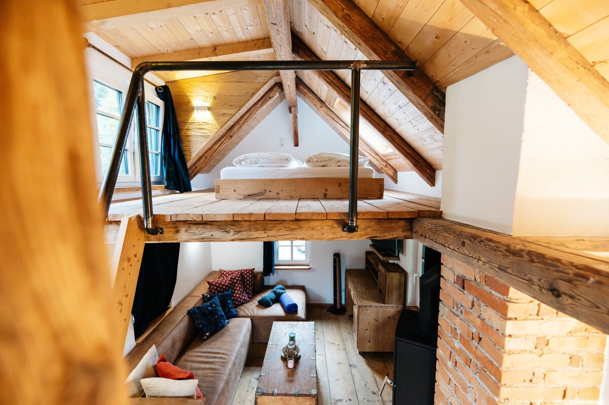 Disfruta de la naturaleza y de las sensacionales vistas de Traunstein, Grünberg y más allá en la autosuficiente Tiny House. Prueba un estilo de vida más sostenible utilizando los recursos de manera consciente. Nuestras gallinas y 4 cerdos enanos están ubicados en la ladera debajo/al lado de la microcasa. En la microcasa te espera una cocina americana, un baño con ducha, un altillo con una cama doble y un sofá cama en el salón. Delante de la casa puedes relajarte cómodamente y disfrutar del sol.