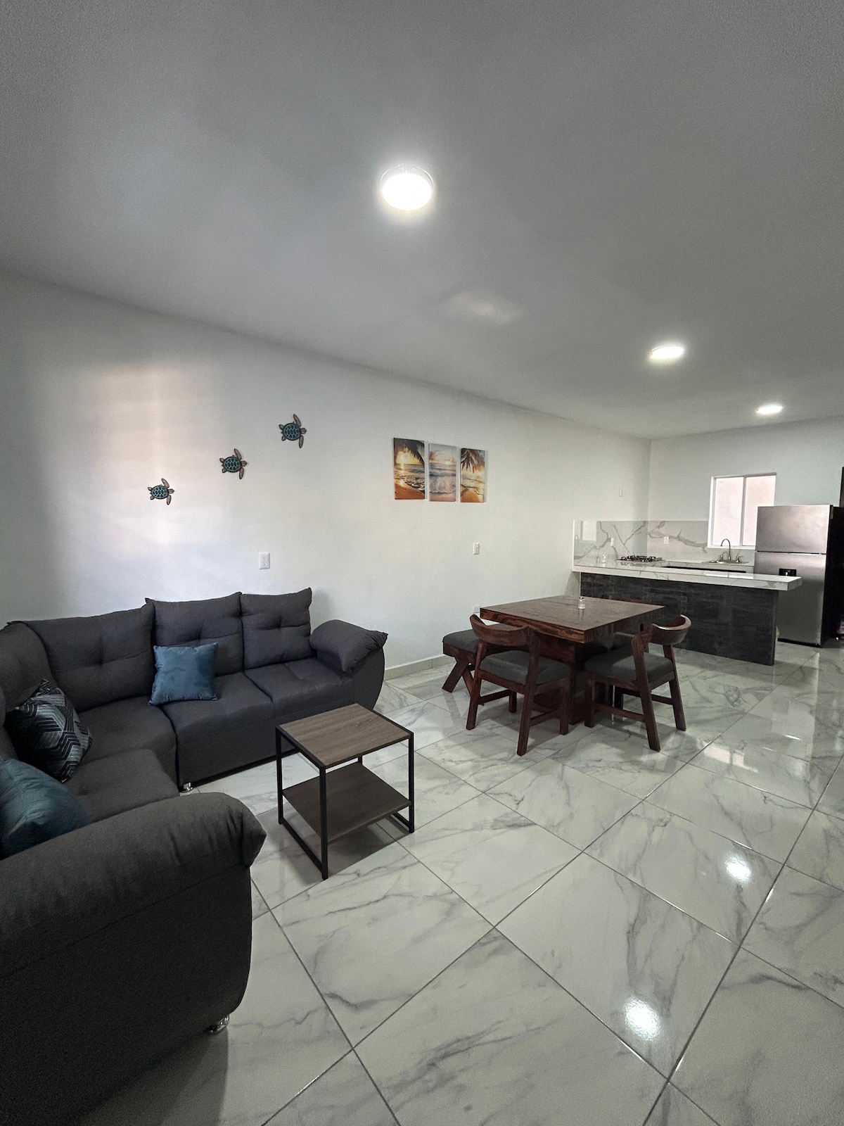 Casa céntrica, ubicada a 3 minutos caminando de la plaza principal y 13 minutos caminando de la playa El borrego. La casa cuenta con estufa, refrigerador, utensilios de cocina (platos, cucharas, vasos, etc), Smart TV.