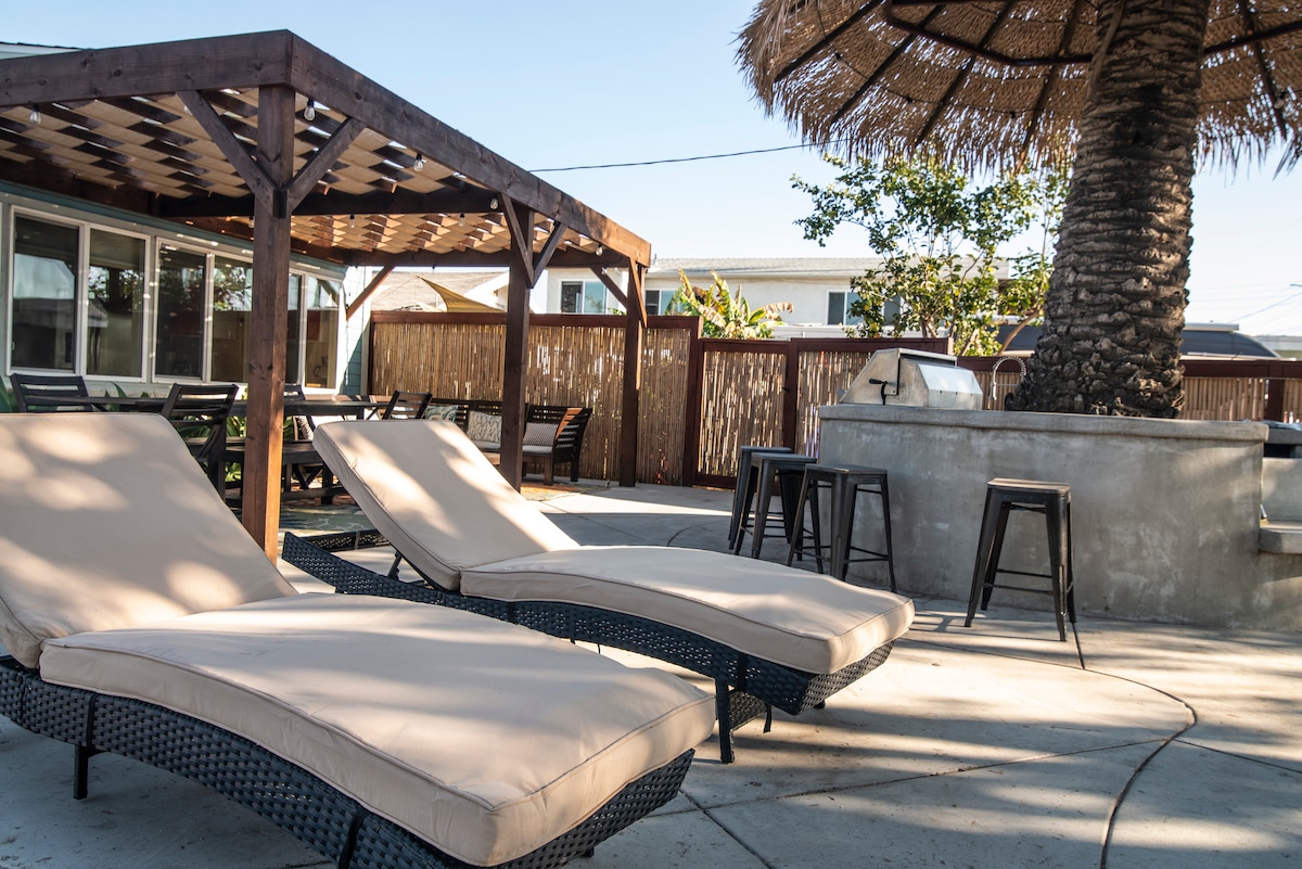 ¡Disfruta del ambiente oceánico y relájate en esta casa de playa de diseño fresco y moderno! Esta casa de playa recién reformada incluye un enorme patio privado, con brasero, barbacoa, sombrilla, ¡un ambiente increíble para relajarse después de un día lleno de diversión en la playa! ¡Nuevos armarios, encimeras, electrodomésticos de acero inoxidable, suelos y muebles de diseño! Todo lo que necesitas para disfrutar de una ciudad de playa: tablas de surf, tablas de boogie, bicicletas playeras, sillas de playa, sombrilla de playa, paddle ball, fútbol, ¡carro de playa para un fácil transporte!