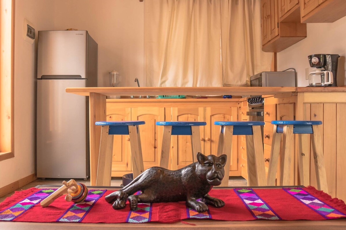 Lindo y luminoso espacio (tipo departamento) en El Cerrillo, uno de los barrios más bonitos y antíguos de San Cristóbal de Las Casas. Está a 6 cuadras de La Catedral y a 3 cuadras del Ex Convento de Santo Domingo. La casita cuenta con dos habitaciones, cocina equipada y un pequeño patio para tomar el sol o para ver el cielo estrellado por la noche.