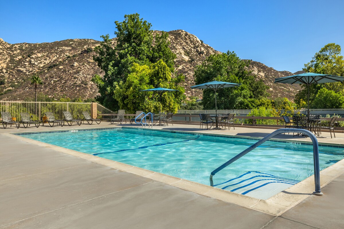 Escápate a la tranquila belleza de Ramona, California, y relájate en un acogedor refugio de 1 dormitorio en Riviera Oaks Resort and Racquet Club. Ubicada en el corazón de la pintoresca campiña, esta encantadora escapada ofrece una mezcla perfecta de relajación y recreación. Disfruta de unas vistas impresionantes, servicios de lujo y un sinfín de oportunidades para vivir aventuras al aire libre.