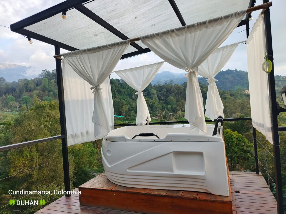Cabaña tipo Chalet, con vista de 360 grados, en medio de la naturaleza a 1 hora de Bogotá por la salida de la calle 80 y desde el puente de guadua; y a 20 minutos en carro o moto del centro del pueblo de San Francisco, Cundinamarca. Puedes disfrutar de avistamiento de aves, descansar en el jacuzzi, relajarse en la malla catamarán con un paisaje de bosque, firmamento y montañas. Cuenta con wifi, parqueadero, agua caliente solar, jacuzzi privado ilimitado, cafetera, balcón, y minibar.