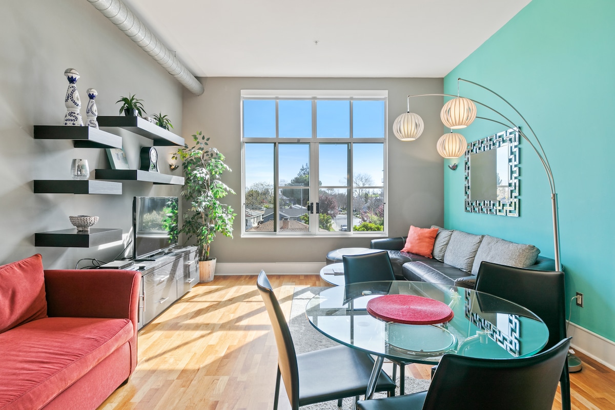 Loft ático luminoso y moderno de 1 dormitorio/1,5 baños (107 metros cuadrados) en el corazón del centro de San Francisco. Enormes ventanas, techos altos y mucha luz natural. Disfruta de una cocina completa, TV OLED de 77" en el dormitorio y, para las noches de cine, un proyector de 120", sonido Sonos y una oficina en casa. Camina hasta el Giants Stadium, Yerba Buena Gardens, Union Square, Whole Foods y los mejores restaurantes. ¡Incluye estacionamiento cerrado/seguro! Última planta, SIN ASCENSOR: ¡vale la pena subir las escaleras por la vista y la luz!