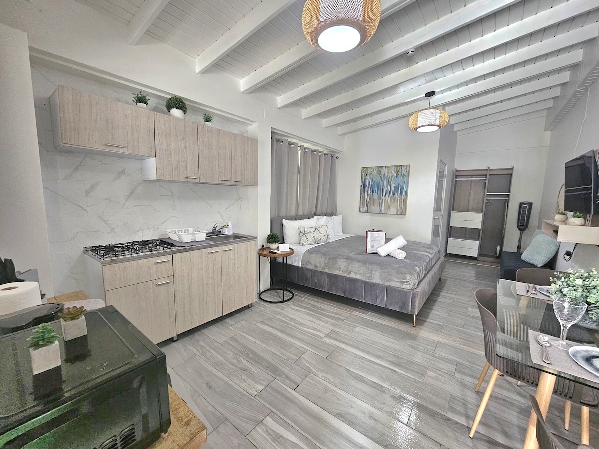 Alójate en el corazón de la histórica ciudad de San Germán, Puerto Rico 🌴 Este elegante apartamento en un segundo piso cuenta con un amplio dormitorio con baño privado, sala de estar en la habitación, cocina completa, comedor y luz natural en todo el alojamiento. Pasea por todo el casco antiguo: cafeterías, plazas, lugares de interés. Aparcamiento privado incluido (¡poco habitual en el centro!). Lavadora y secadora compartidas gratuitas en el alojamiento. A minutos de Boquerón y de las playas de la costa oeste. Ideal para parejas, nómadas digitales y estancias largas.