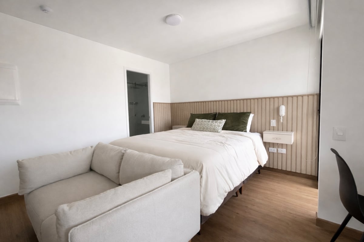 Estudio acogedor, cómodo con aire acondicionado.