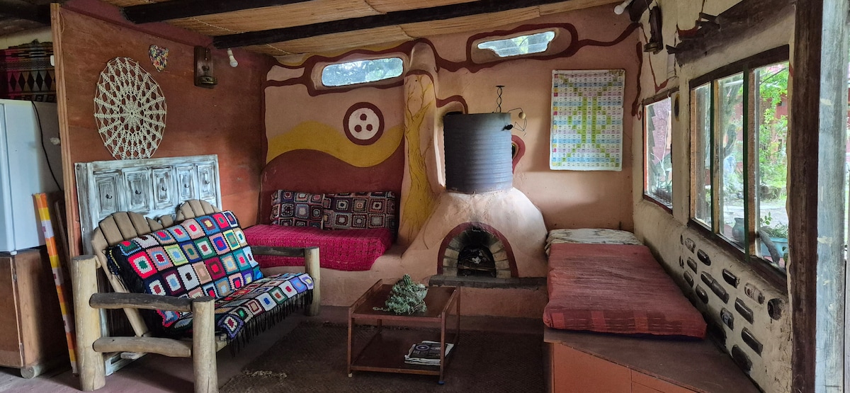Relax en esta escapada única y tranquila, en un ambiente donde prima la naturaleza, el juego de luz y sombra entre lo interno y lo externo, la bioconstrucción y el reciclado son pilares de este espacio rustico y natural. Octógono con techo verde para yoga y meditación con camilla Cocina completa, 1 dormi, baños exteriores, living con estufa rocket, comedor, espacios exteriores con hoguera, horno de barro, uso de la pisicina o el arroyo, senderos en el monte nativo, caballos curiosos y amigables