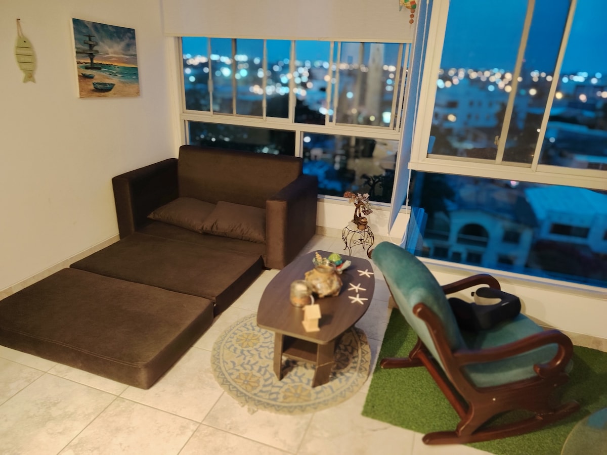 El departamento muy limpio y acogedor ubicado en el centro de Salinas, a solo 2 cuadras de la playa y cerca de Hotel Salinas Costa Azul. . El departamento es adecuado para estadías cortas o prolongadas, para vacaciones familiares o de negocios. Cada huésped recibe un regalo especial para la playa.