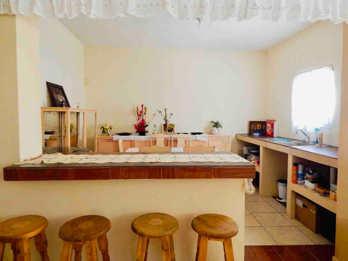 Diviértete con toda la familia en este alojamiento con estilo, se encuentra en la parte superior de otra casa es totalmente independiente cuenta con dos cuartos ambos con baño completo y TV de 75 pulgadas así como sala con TV de 75 pulgadas, cocina equipada con licuadora, horno, parrilla de seis quemadores, refrigerador,comedor para 8 personas, balcón y terraza super amplia además de estacionamiento para un vehículo de tamaño mediano