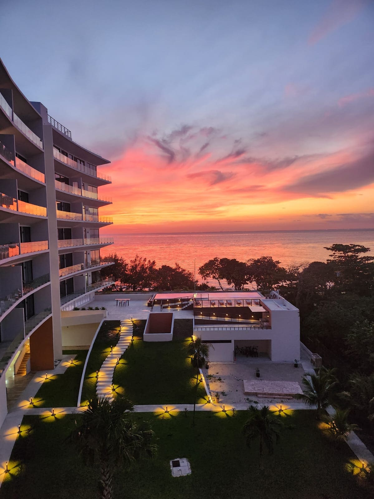 Modern, well-equipped 1BR with King bed and walk-in closet in the Center of town. Located a 3 min walk from the ferry and 1 block from the town square you are steps from cafés, restaurants and the municipal Mercado. Rooftop deck with pool and 360° view, equipped gym. Watch the sunset from your own terrace with water view. Nespresso coffee maker, stovetop, microwave, full-size fridge/freezer, bottled water and spices provided. Your home away from home in beautiful Cozumel.
