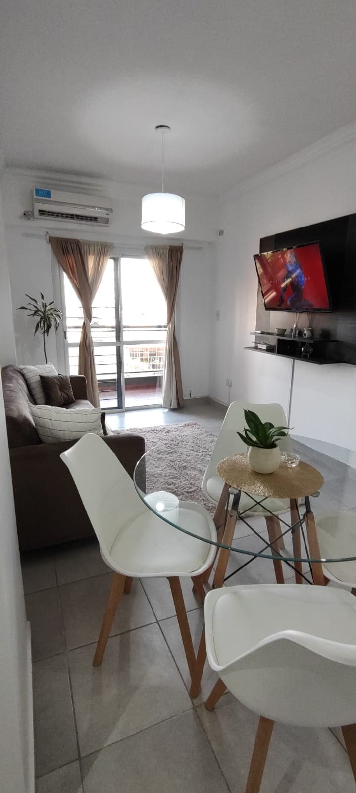 Luminoso departamento en pleno centro de San Miguel de Tucumán. Está situado a 600 metros de la Casa Histórica y 400 metros del Parque 9 de Julio, a 15 minutos del aeropuerto. Diseñado con un gusto exquisito y elementos de primeras marcas, constituye un pequeño oasis para que te sientas como en casa. La cocina está totalmente equipada. Cuenta con aire acondicionado y un smart tv, además de un cómodo sillón para relajarte. El ambiente se completa con iluminación regulable.