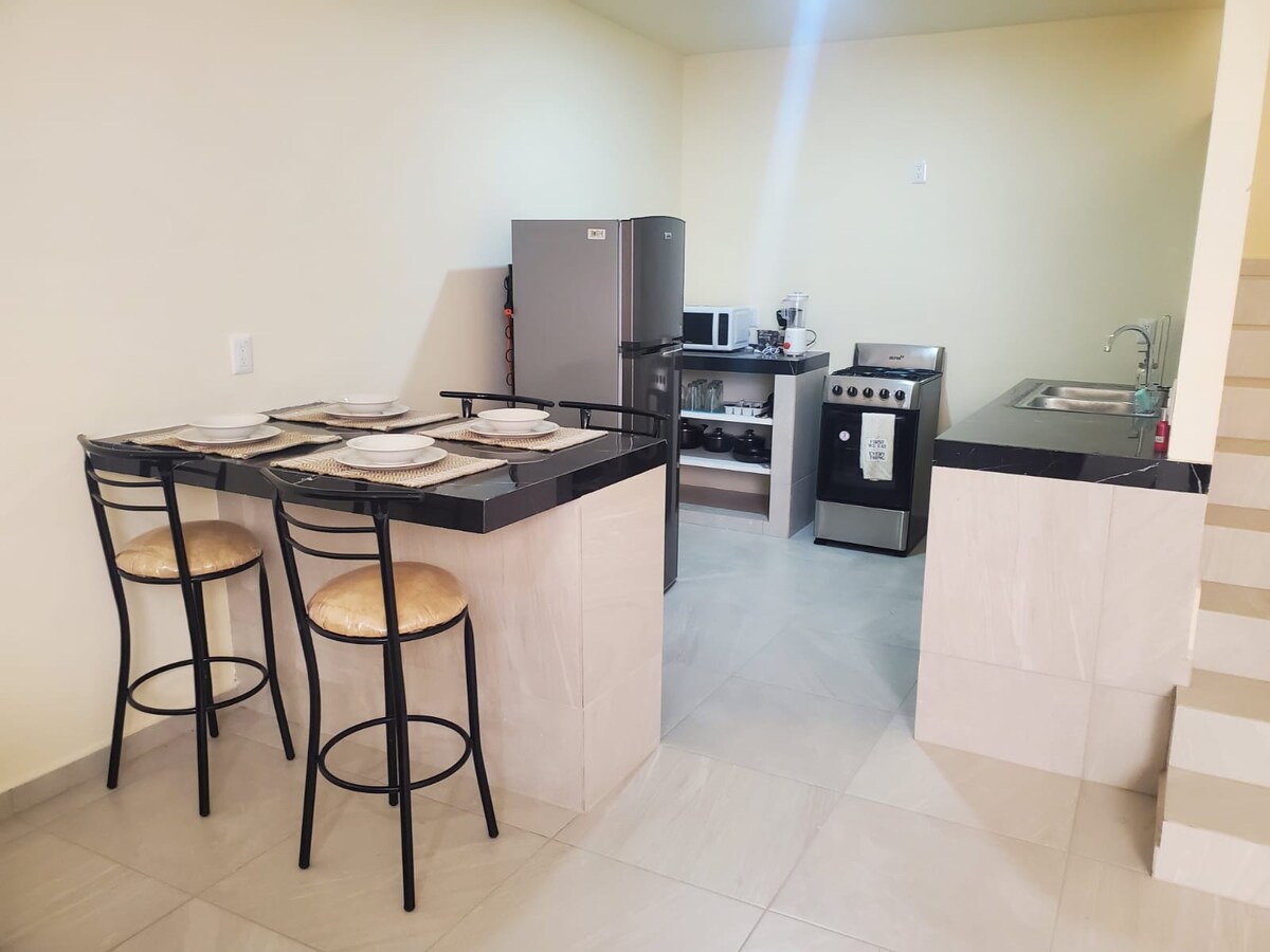 Cómodo departamento privado en un segundo piso, en Santa Maria de El Valle Jalisco. Una recámara con baño privado, Amplia sala con 2 sofá cama, Medio baño extra en la entrada incluido: wifi, Nexflix cable, plancha, secadora, ganchos para la ropa, refrigerador, cafetera, microondas, utensilios, jabón shampoo.