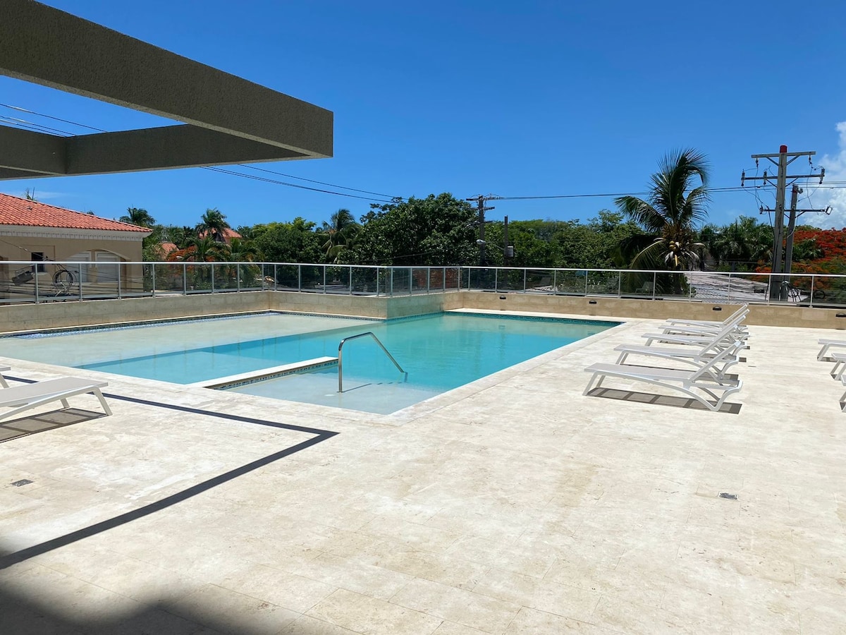 Disfruta de esta relajante experiencia en nuestro apartamento frente al mar, rodeado de amplios espacios de recreación y tranquilidad, este apto es el lugar perfecto para quienes bucan comodidad y belleza en su próximo destino frente al mar. Podrás tener acceso a la playa de Juan Dolió a 5 min caminando. Áreas comunes: • Piscina • Jacuzzi • Lobby • Gazebo • Cancha de voleibol A 10-15 minutos en coche del Malecón, Jumbo, el estadio de béisbol Tetelo Vargas y la Zona Franca.