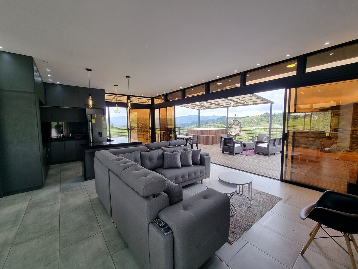 Finca de Lujo con Hermosa Vista Completamente dotada Ubicada a 40 min de la ciudad de Medellín 20 min del aeropuerto Jacuzzi Espectacular para 16 personas con calefaccion,también puede ser usado como piscina en los dias soleados Zona BBQ kiosko con chimenea Gimnasio Parqueadero para 8 carros Contamos con una mayordomo las 24 horas apartir del huesped 16 se hara un cargo adicional 50.000/dia persona horarios de check-in y check-out FLEXIBLES segun disponibilidad