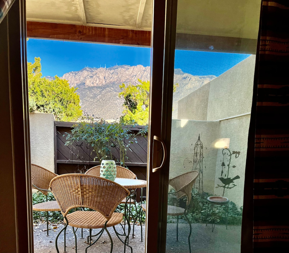 La Casita es un acogedor estudio privado con una cama tamaño queen y un baño separado. La cocina americana está equipada para comidas sencillas. Hay un sofá de dos plazas, una mesa de comedor con dos sillas, un escritorio, perchas y un aparador. El porche delantero tiene asientos y el patio trasero privado tiene una pérgola iluminada, muebles de comedor y vistas a la montaña Sandia. El Balloon Fiesta Park está cerca y los globos vuelan cerca durante todo el año. ¡Situado en la encrucijada de la cultura y las vistas! SE ADMITEN HASTA 2 PERROS, NO GATOS.