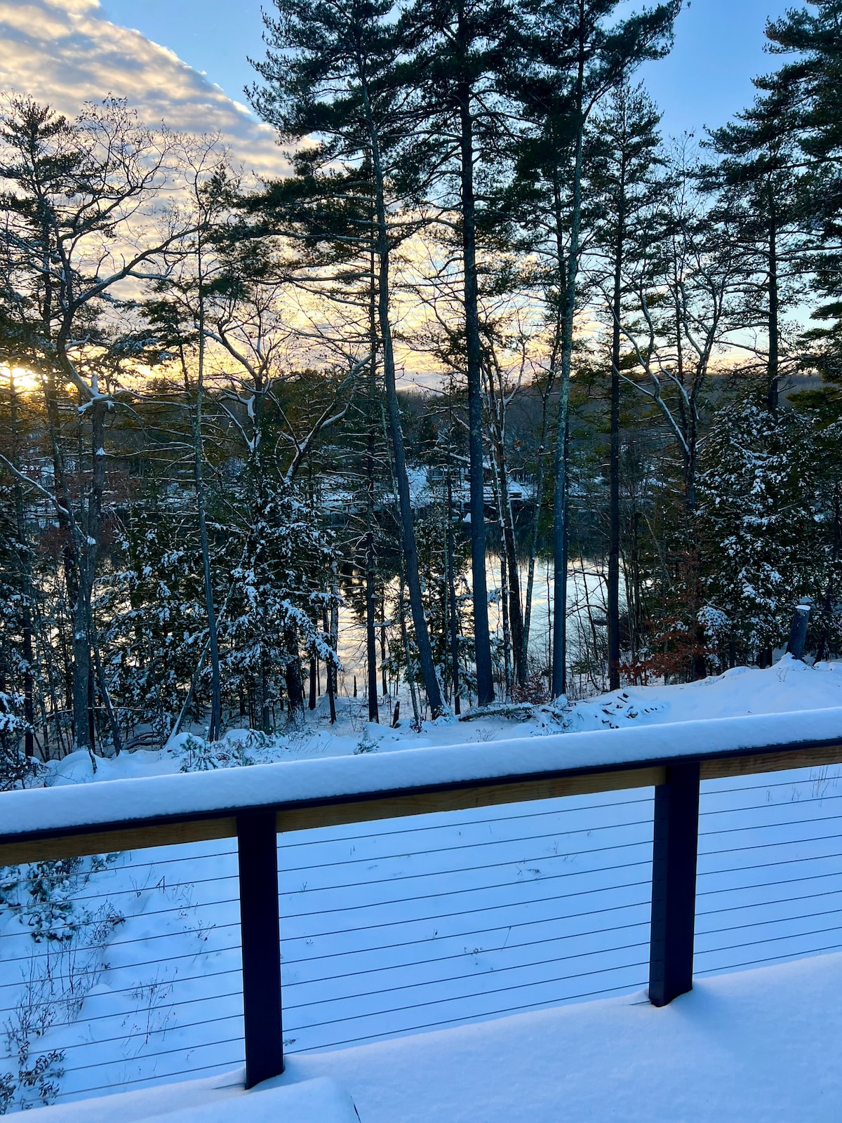 Escápate a un refugio tranquilo junto al lago con una terraza aislada iluminada por el sol y un muelle privado con increíbles vistas del lago Sunrise, además de una bañera de hidromasaje para 4 personas y servicios de temporada como un bote a pedales, dos kayaks, una tabla de surf de REMO, mesa de fuego de gas, aire acondicionado central, una estufa de pellets y raquetas de nieve. Disfruta de actividades cercanas como senderismo, observación de hojas, esquí y visita a ciudades pintorescas, viñedos locales y cervecerías, o simplemente relájate en un hermoso entorno frente al lago. ¡Las puestas de sol pueden ser increíbles!
