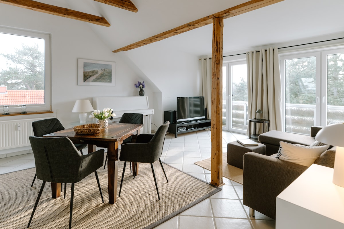 Hermoso apartamento de 4 habitaciones con aprox. 75 metros cuadrados en la planta baja para un máximo. 4 personas. En el precioso pueblo de Böhl, rodeado de dunas y casas con techo de paja. El Nordlicht Bude se encuentra en una tranquila calle lateral y tiene una gran propiedad luminosa. En un acogedor salón o en la tumbona puedes terminar la noche con una copa de vino. El "Dünen Butze" está equipado con muebles luminosos y acogedores en colores tierra y un moderno baño con ducha y muebles de madera.