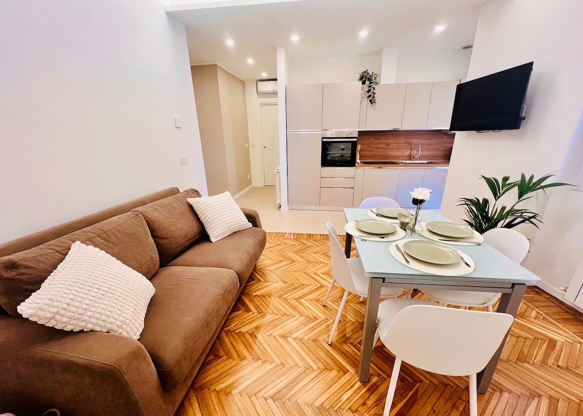 Encantador apartamento renovado en noviembre de 2025, con vistas al «Casino di Sanremo». En el corazón de la zona peatonal de Via Matteotti, una residencia elegante de unos 65 metros cuadrados con casi 40 metros cuadrados de terraza, única en la zona. A un paso de las magníficas playas y del «carril bici Riviera dei Fiori», una joya del Mediterráneo. 1 dormitorio doble, 1 baño, una gran cocina con península con vistas a la sala de estar y un amplio trastero completan el interior. Wifi gratuito.