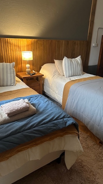 Equipada con sommier de 180x200 Baño privado, secador de cabello, caja de seguridad y calefacción central. Áreas comunes, salón amplio para disfrutar el desayuno con un hogar a leña y sillones. Ubicado en zona norte a pocos metros del sendero al Fitz Roy y Laguna Torre. Te encantará este adorable lugar para quedarte, en un ambiente cálido y familiar.