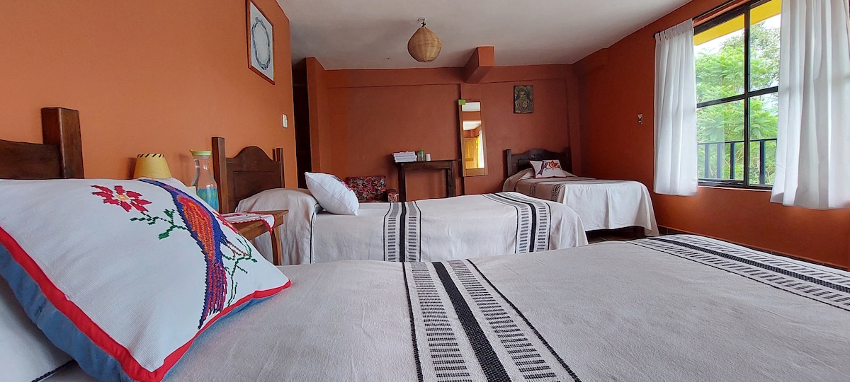 Disfrute de la magia, la niebla y el misticismo de la Sierra Mazateca en un espacio totalmente renovado. Nuestra estancia combina la calidez rústica de la madera con comodidades modernas. Es el lugar ideal para explorar Huautla: camina al mercado por la mañana o visita la Casa de María Sabina por la tarde. Perfecto para parejas, familias pequeñas o viajeros que buscan un descanso funcional y limpio.