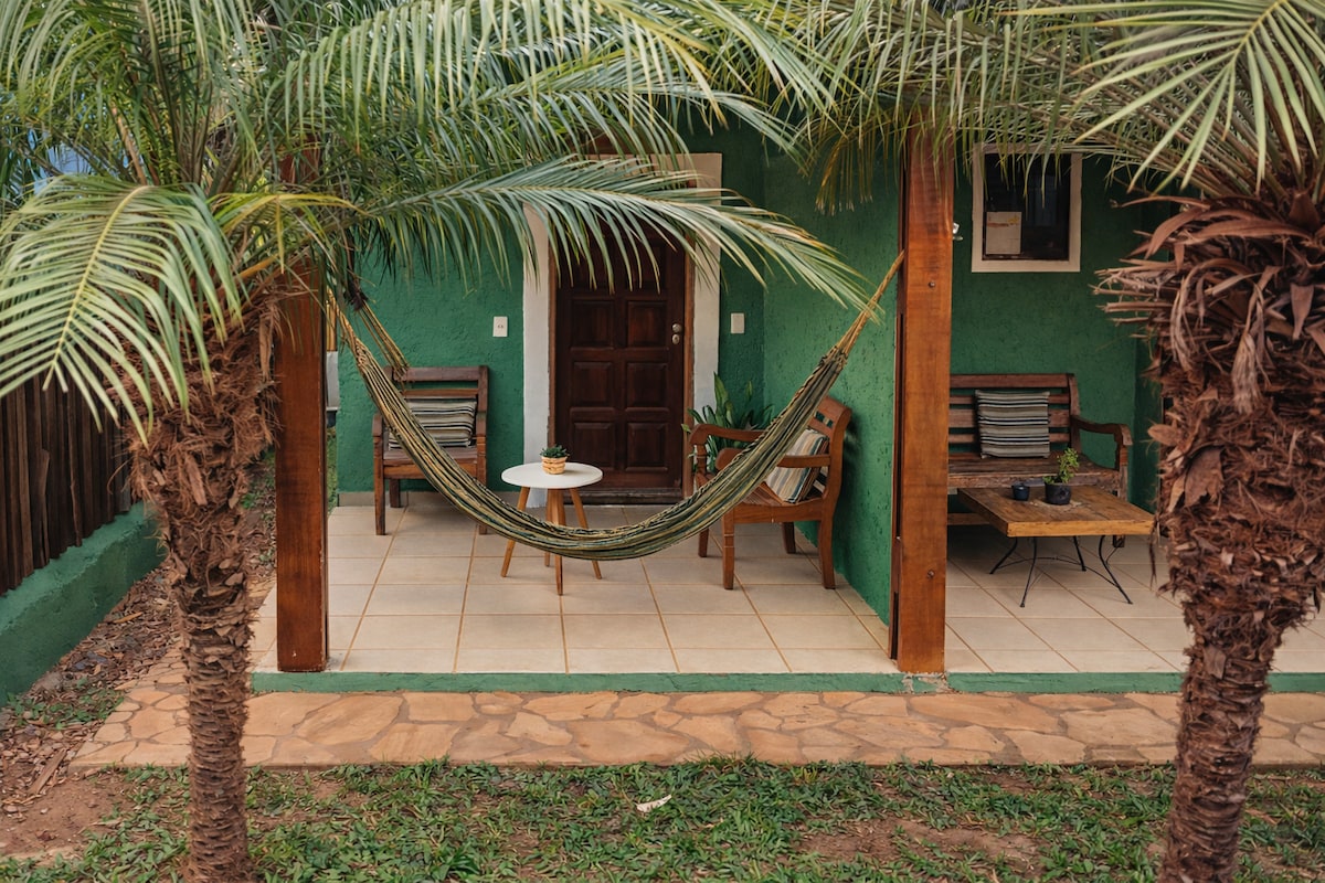 Agradable chalet con cocina completa (cocina, nevera, microondas y utensilios), de unos 40 m2. Estamos en el pueblo de Lapinha da Serra, con una excelente ubicación a menos de 300 metros de la plaza principal, con acceso a pie a restaurantes, panadería, mercados y algunos lugares de interés turístico (pozo de Boqueirão, cascada de Rapel y Prainha). CHECK OUT "NO STRESS": Para que su estancia sea especial, le ofrecemos como cortesía el late check-out, es decir, su salida puede ser hasta las 18 horas.