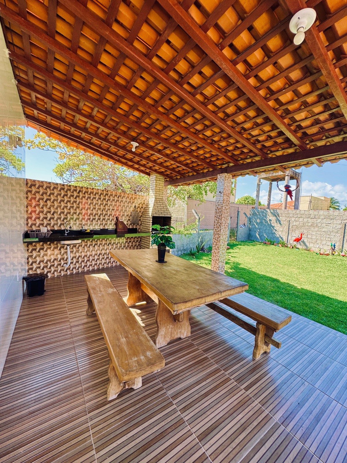 Casa Aconchegante, ubicada dentro del Condomínio Dunas Park, 4 suites: 2 con baño reversible y balcones, ropa de cama y baño completo, todas con aire acondicionado, duchas eléctricas, armarios y hamaca. Piscina completa: estufa con horno, freidora de aire, licuadora, ollas, bebedero de agua, barbacoa, armarios de cocina y gran mesa de comedor. Sala de estar: sofá con TV. Zona de ocio: con piscina privada, tumbonas, ducha y propietarios de redes.